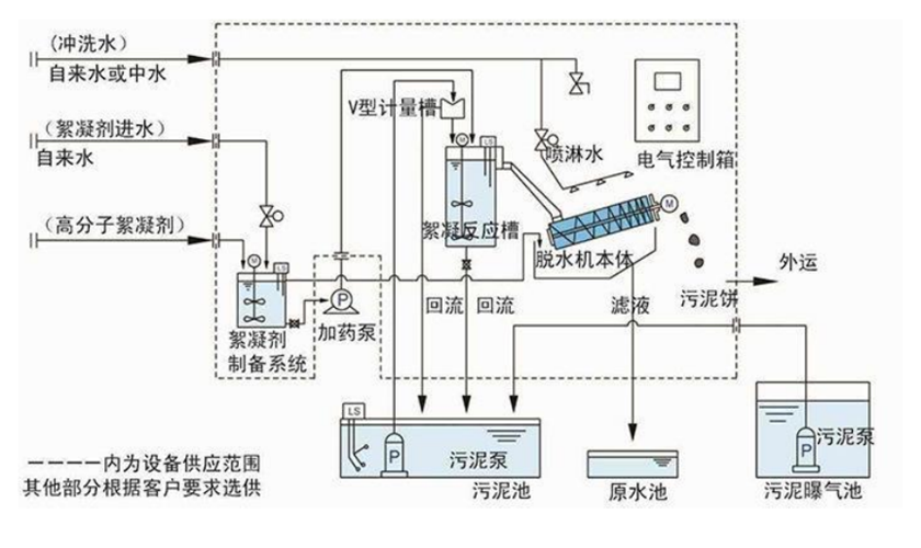● 機體設(shè)計緊湊,濃縮脫水一體化,本身帶有電控柜和污泥絮凝混合槽等輔助裝置,對配套設(shè)備兼容性強,便于設(shè)計。